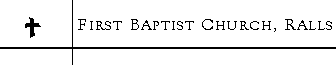 First Baptist Church of Ralls is dedicated to the preaching and teaching of the Gospel of Jesus Christ. Our purpose is to bring Honor and Glory to Almighty God in all that we do. We are located at 521 Tilford, just off of Hwy. 207 in Ralls. The Church office is located on the East side of the building.