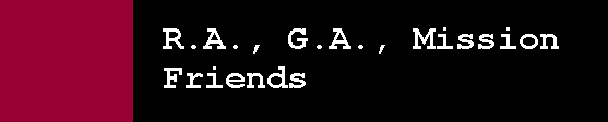 Sept. 5, 2001 R.A.s, G.A.s, Mission Friends, Acteens and Challengers have started and are in full swing for the school year. We hope that you are ready to dive back into God's word learning about Missions. Classes begin at 7:00.